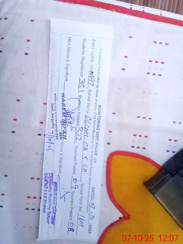 | EMIS Code: 38410497 | Name of School: GGCMS CHAK NO.5 SB | |||