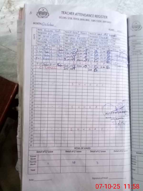 | Name: FO**** TA**** Designation: (School Headmaster's/Headmistress's) SSE (SCIENCE) Phone/Cell Number: 03**** |
