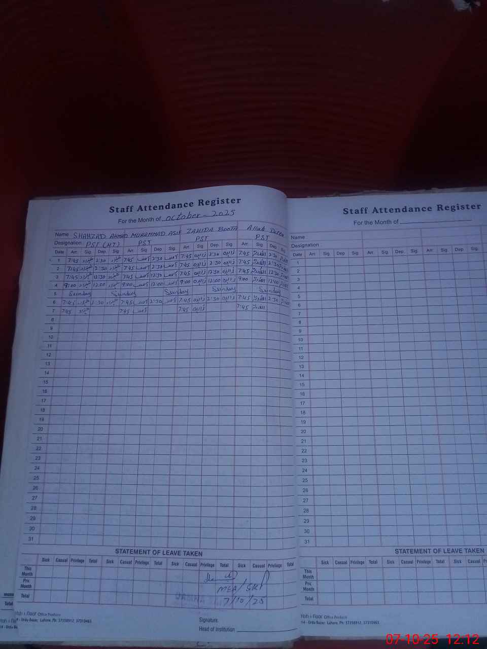 | Name: SH**** AH**** Designation: (School Headmaster's/Headmistress's) PST Phone/Cell Number: 03**** |