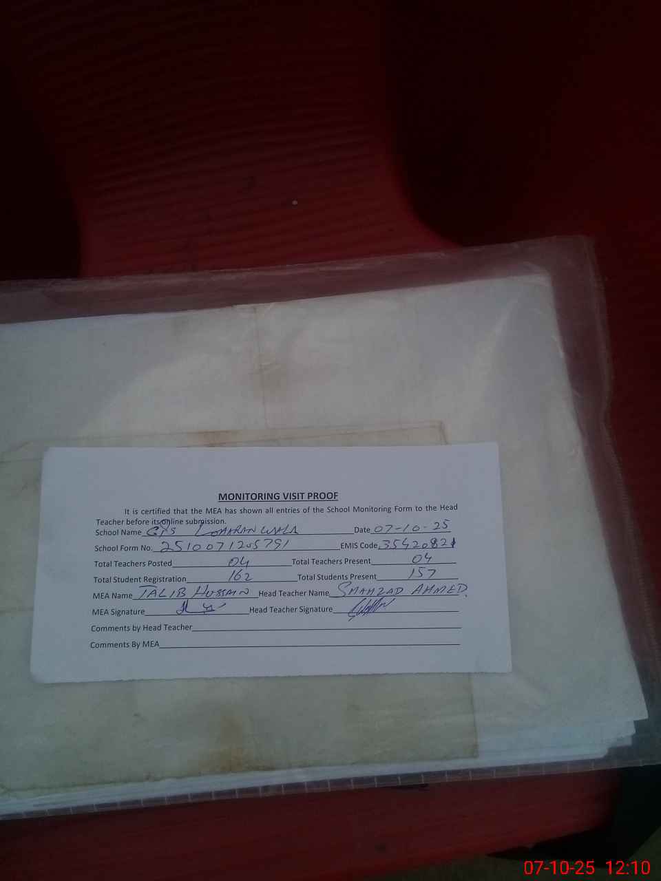 | Certified that this School was Inspected by the Undersigned MEA/DMO Today and the Information Stated Above is as Per Record. | |||||