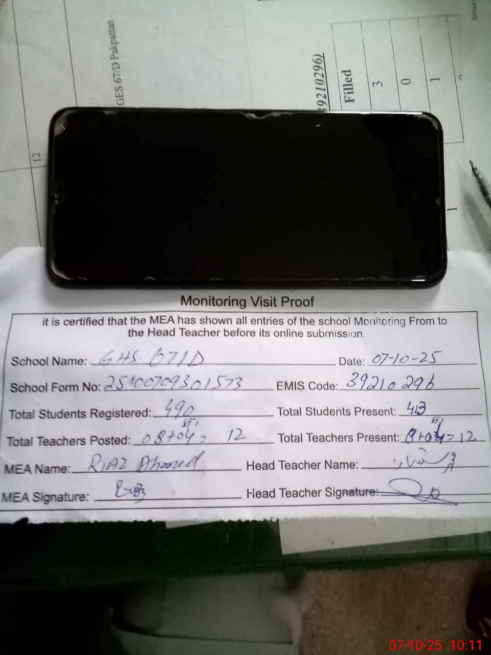 | EMIS Code: 39210296 | Name of School: GHS 67 D | |||