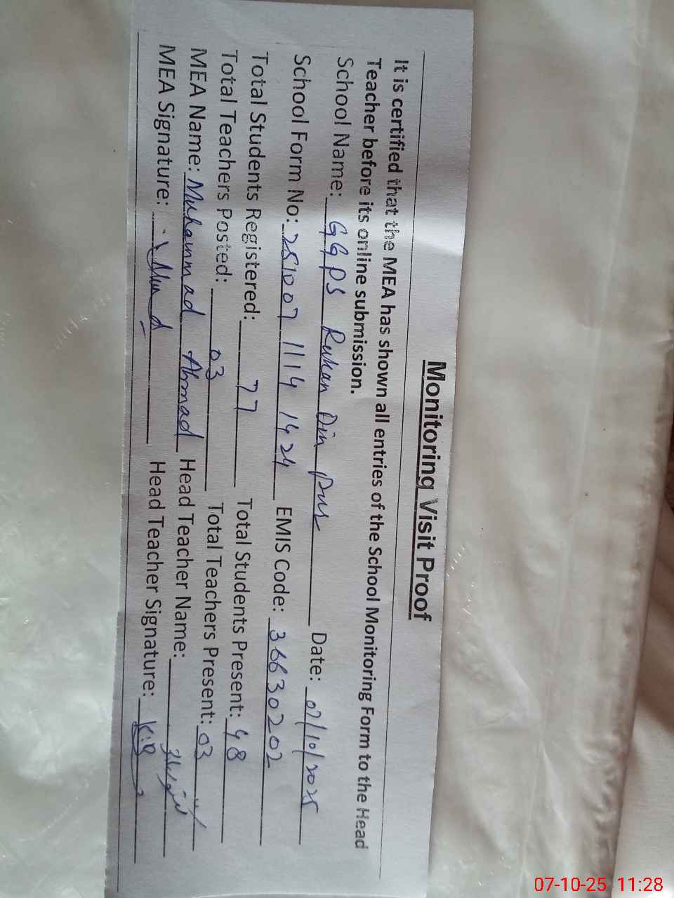 | EMIS Code: 36630202 | Name of School: GGPS RUKAN DIN PUR | |||