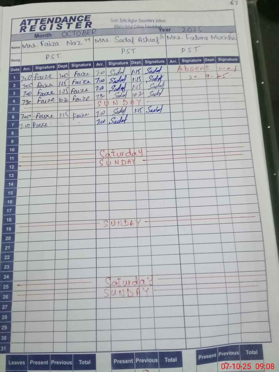 | 33**** | Fa**** Mu**** | PST | Regular | 0 | 0 | 0 | 0 | 0 | 0 | 0 | 0 | 0 | Absent (Un-Authorized) |