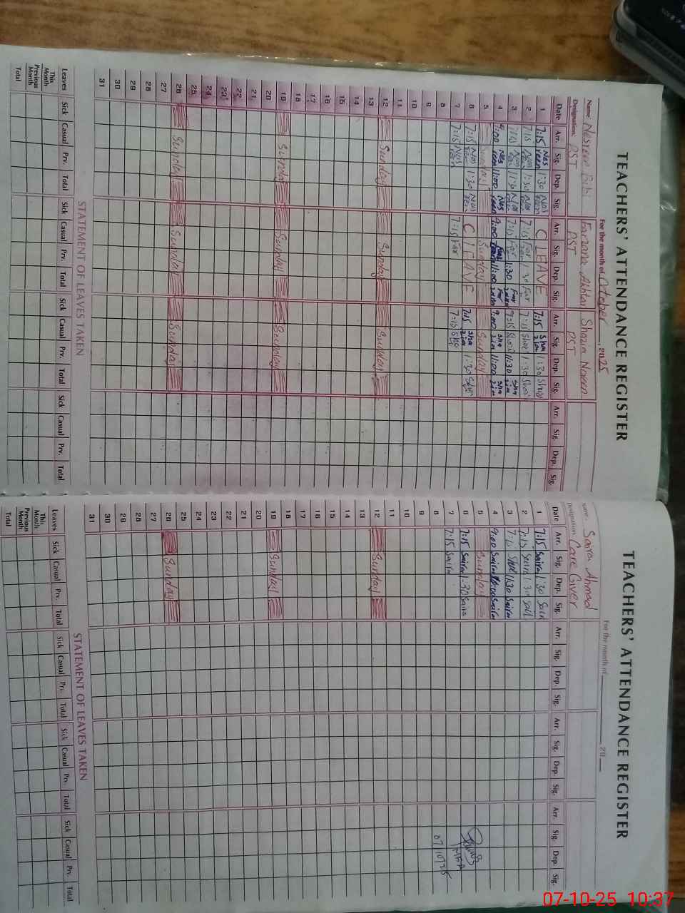 | Leave | Duty | Absent | Maternity | Medical | Ex- Pak |
