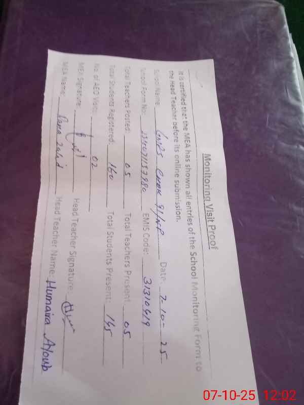 | Certified that this School was Inspected by the Undersigned MEA/DMO Today and the Information Stated Above is as Per Record. | |||||