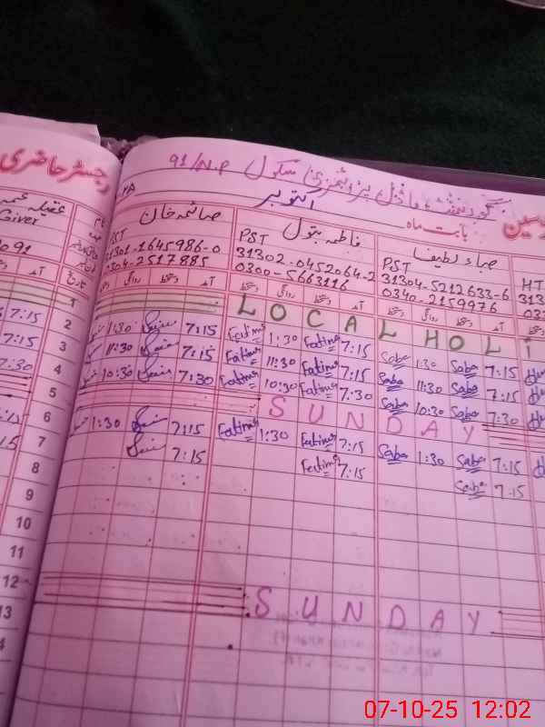 | Name: Hu**** Ay**** Designation: (School Headmaster's/Headmistress's) PST Phone/Cell Number: 03**** |
