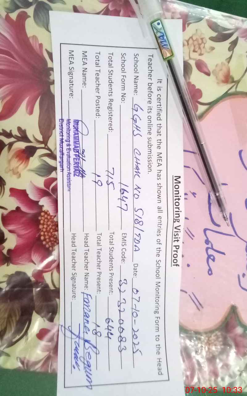 | EMIS Code: 32320083 | Name of School: GGHS CHAK NO. 518/TDA | |||