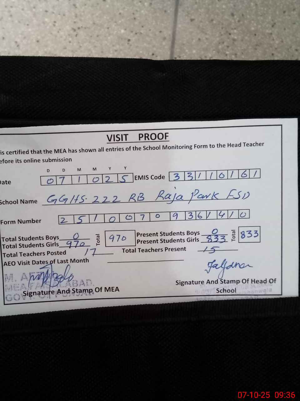 | Certified that this School was Inspected by the Undersigned MEA/DMO Today and the Information Stated Above is as Per Record. | |||||