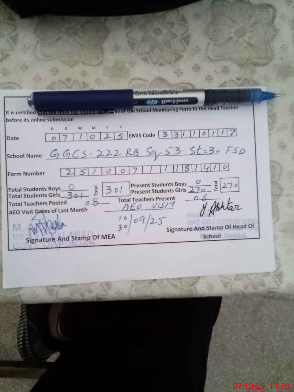 | EMIS Code: 33110117 | Name of School: GGES CHAK 222 RB SQ 53 ST. 30 | |||