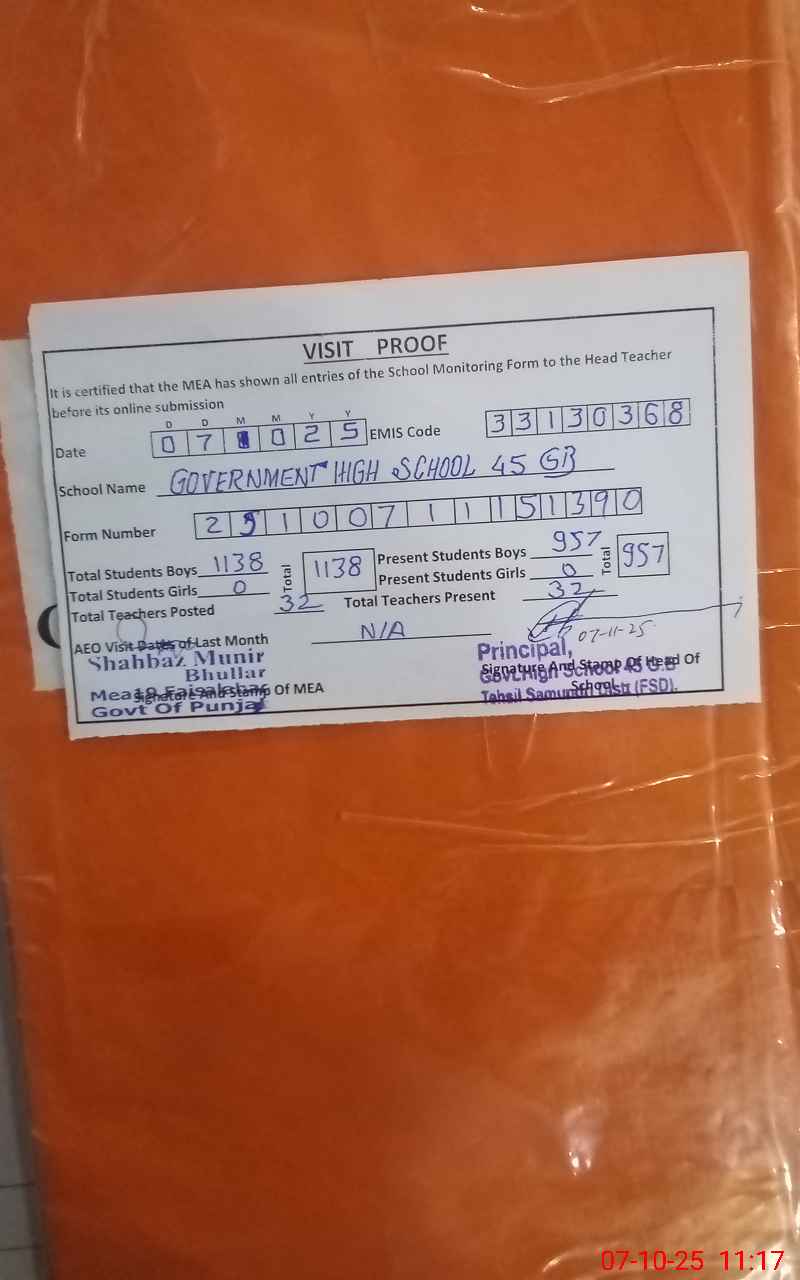 | EMIS Code: 33130368 | Name of School: GHS CHAK 45 GB SAMUNDRI FSD | |||