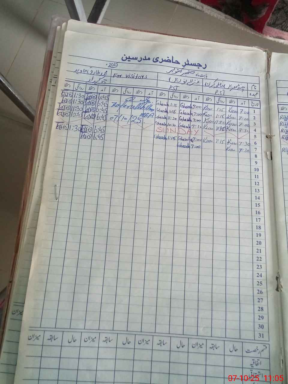 | Monitoring Date: 07-10-2025 | Start Time: 07-10-2025 10:58 AM | End Time: 07-10-2025 11:36 AM | Name of MEA: ZA**** UL**** KH**** | |
