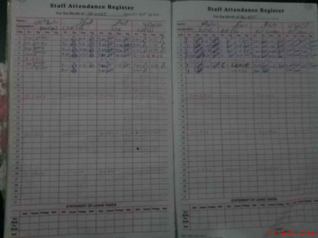 | Leave | Duty | Absent | Maternity | Medical | Ex- Pak |