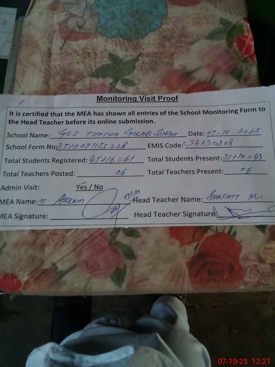 | EMIS Code: 34130208 | Name of School: GES THATTA GULAB SINGH | |||