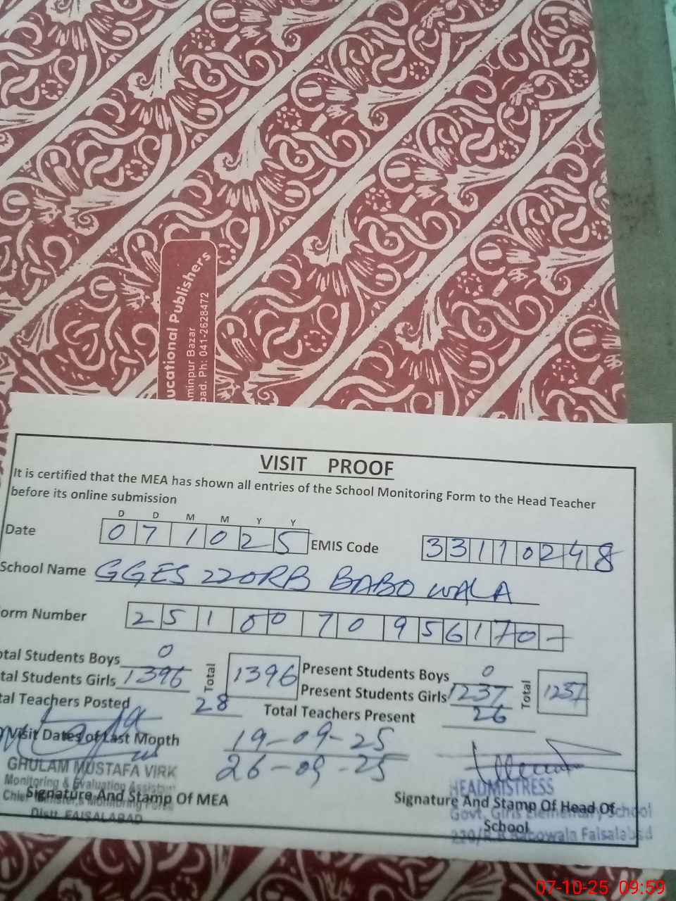 | EMIS Code: 33110248 | Name of School: GGES 220 RB BABO WALA | |||