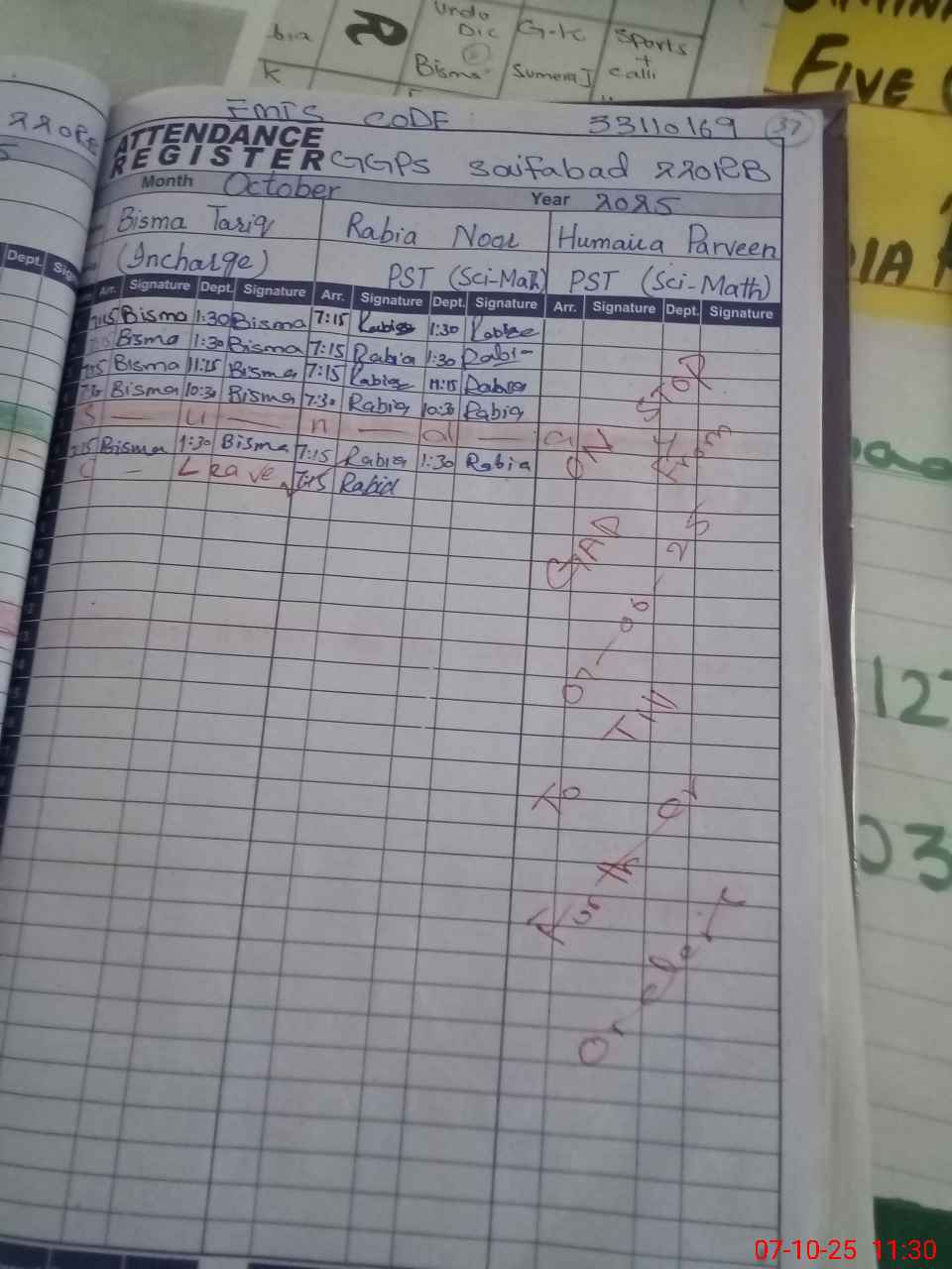 | EMIS Code: 33110169 | Name of School: GGPS SAIF ABAD 1 220 RB | |||