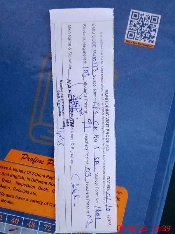 | EMIS Code: 38410173 | Name of School: GPS CHAK NO.5 SB | |||