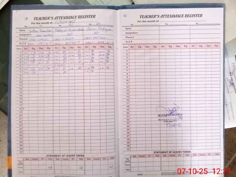| Attendance Register | Head Teacher | MEA with School | Visit Proof |