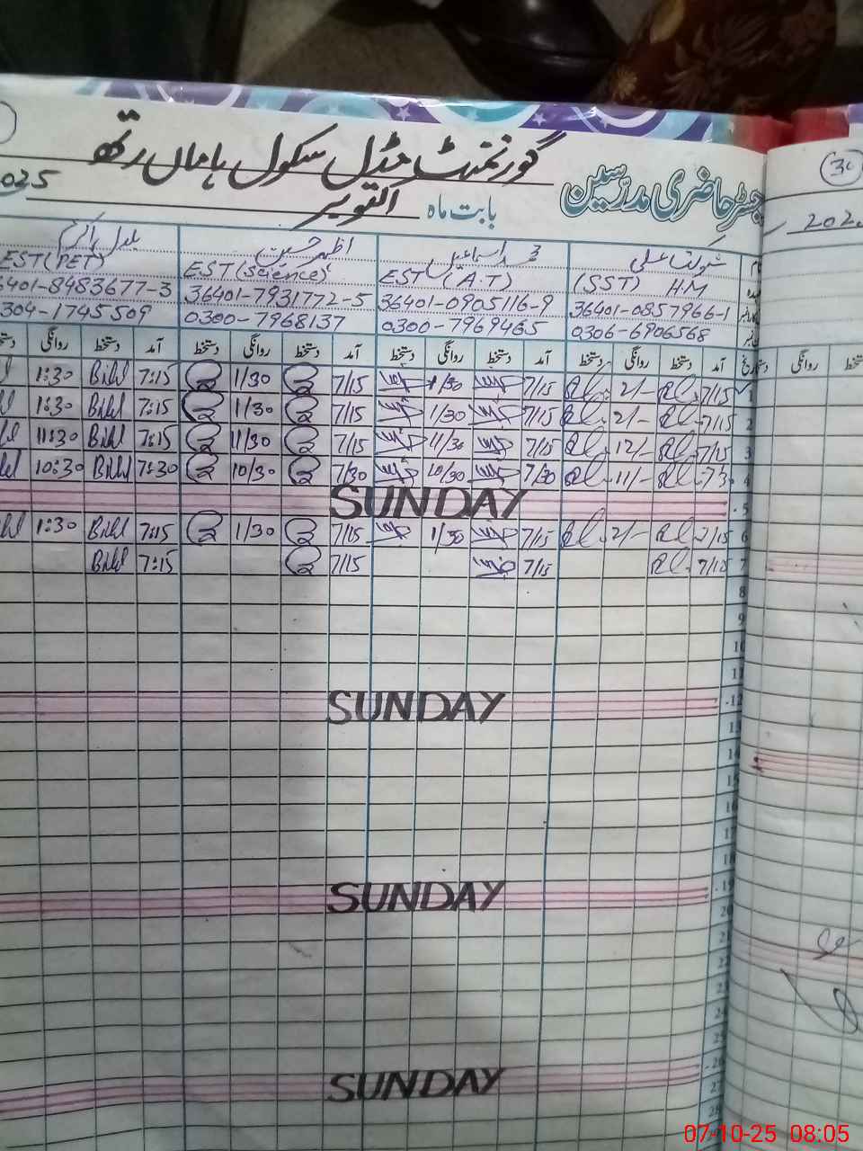 | Name: SH**** AL**** Designation: (School Headmaster's/Headmistress's) S.S.T.(SCIENCE) Phone/Cell Number: 03**** |