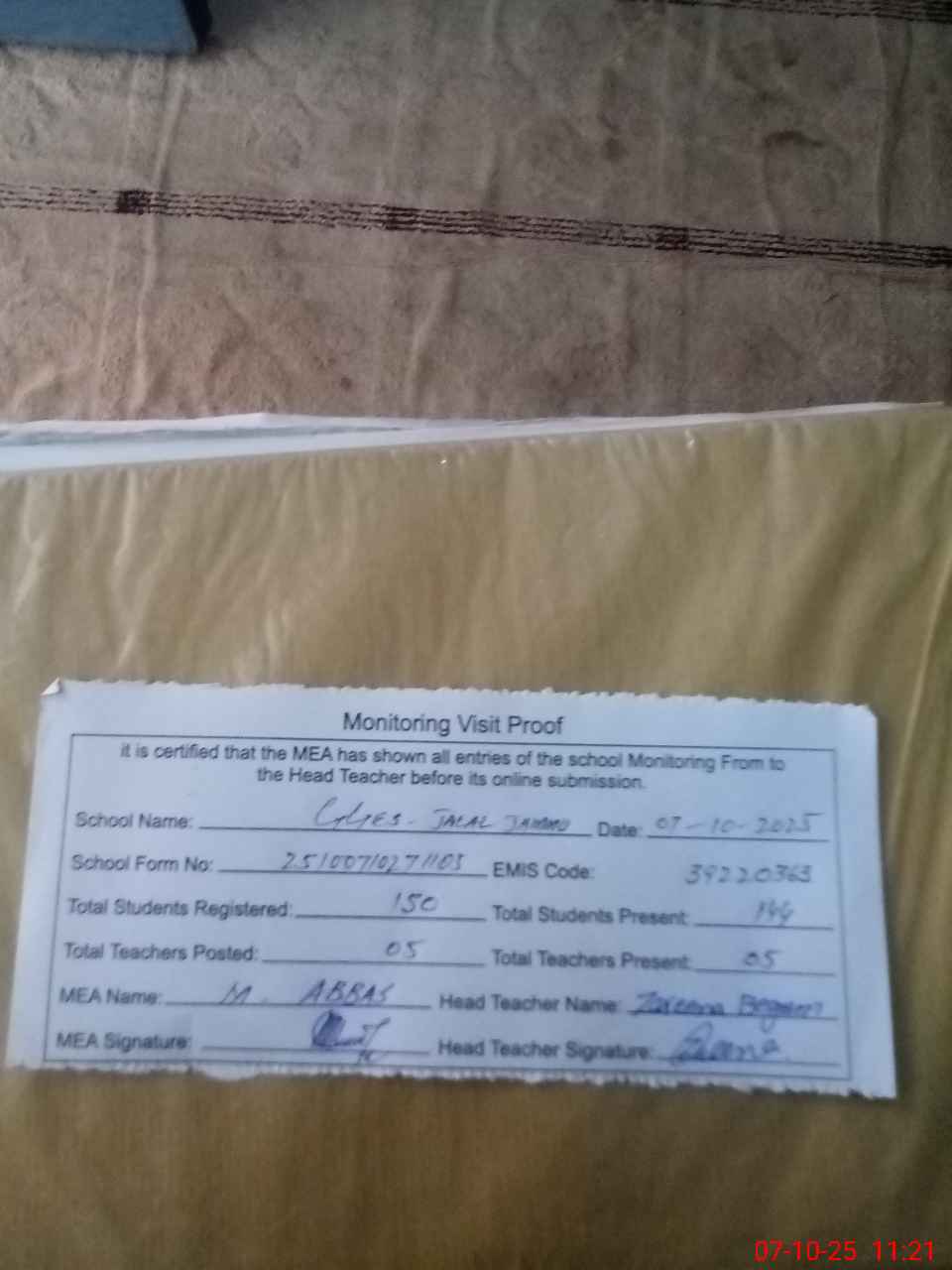 | EMIS Code: 39220363 | Name of School: GGES JALAL JAMMOON POST OFFICE MARI HAZARA | |||