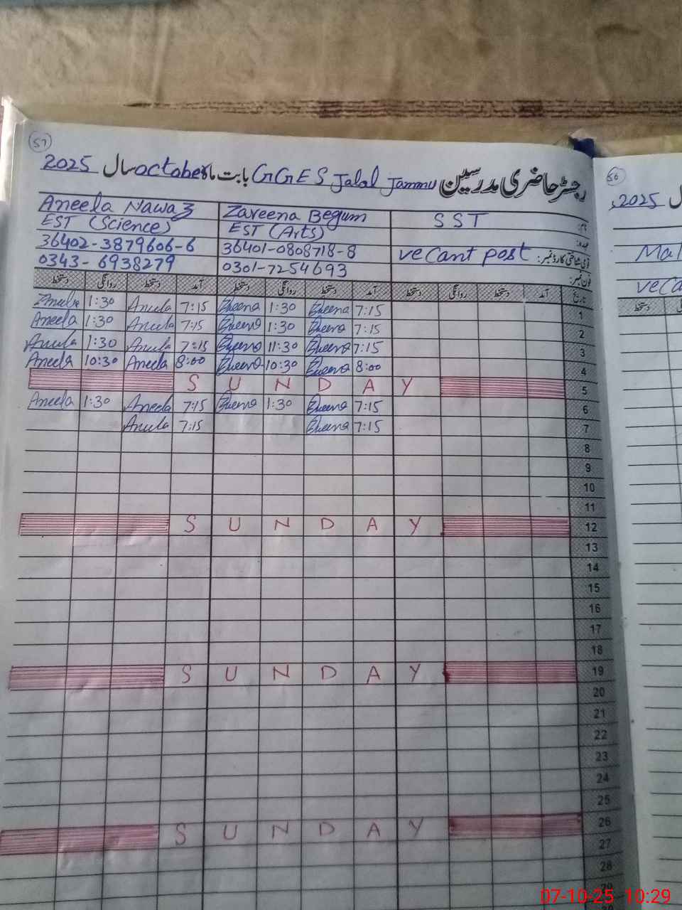| CNIC | Full Name | Designation | R/C | Absence During Last Calender Month |