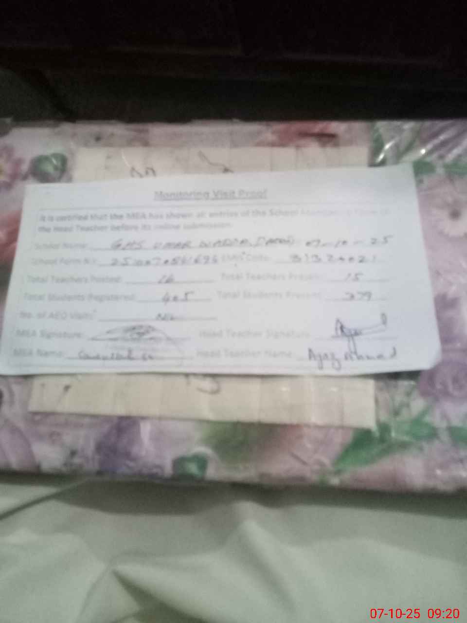 | EMIS Code: 31320021 | Name of School: GHS UMAR WADDA DASHTI | |||