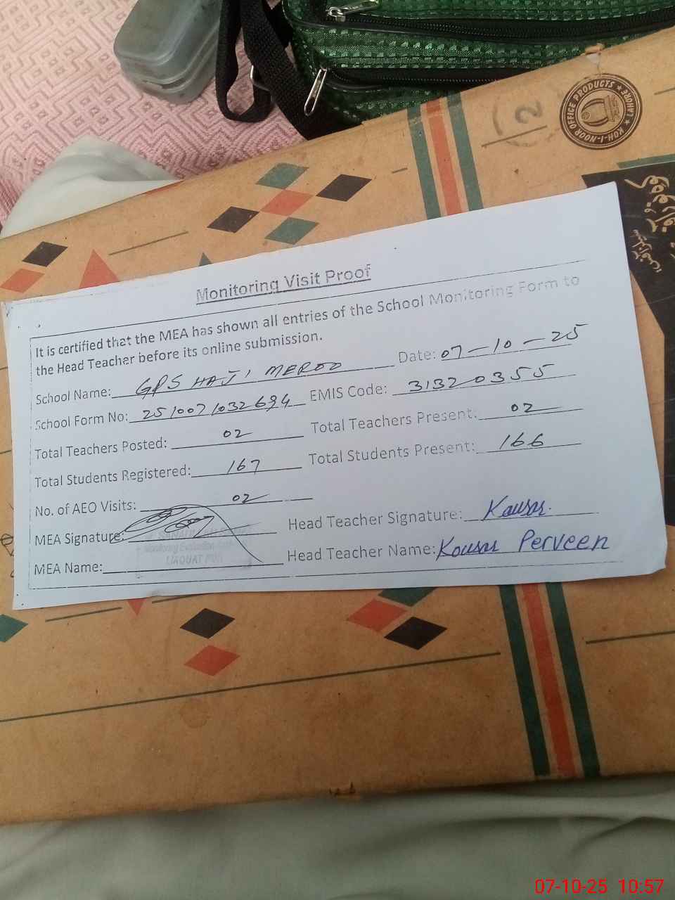 | EMIS Code: 31320355 | Name of School: GPS HAJI MEROO | |||
