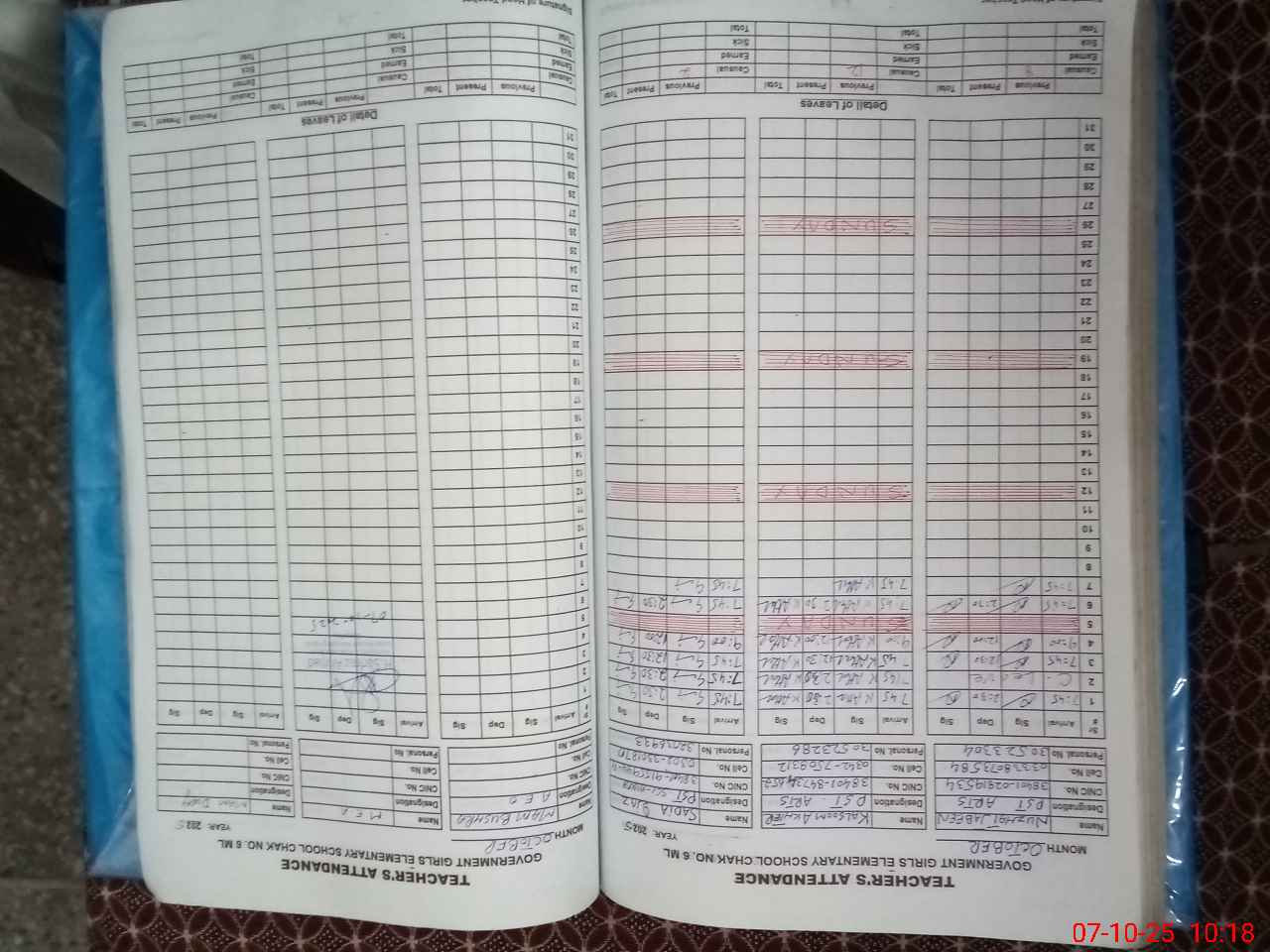 | CNIC | Full Name | Designation | R/C | Absence During Last Calender Month |