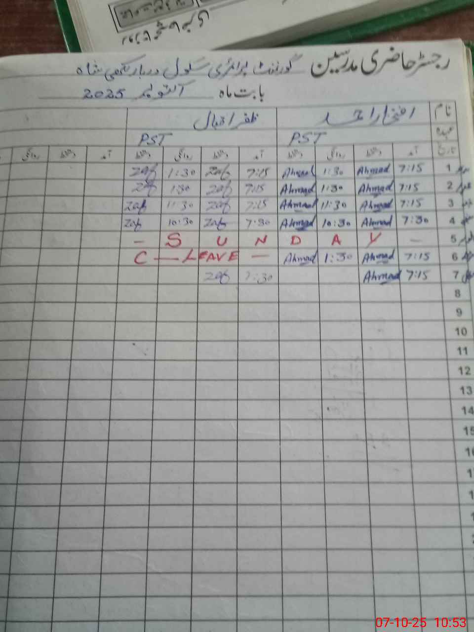 | CNIC | Full Name | Designation | R/C | Absence During Last Calender Month |