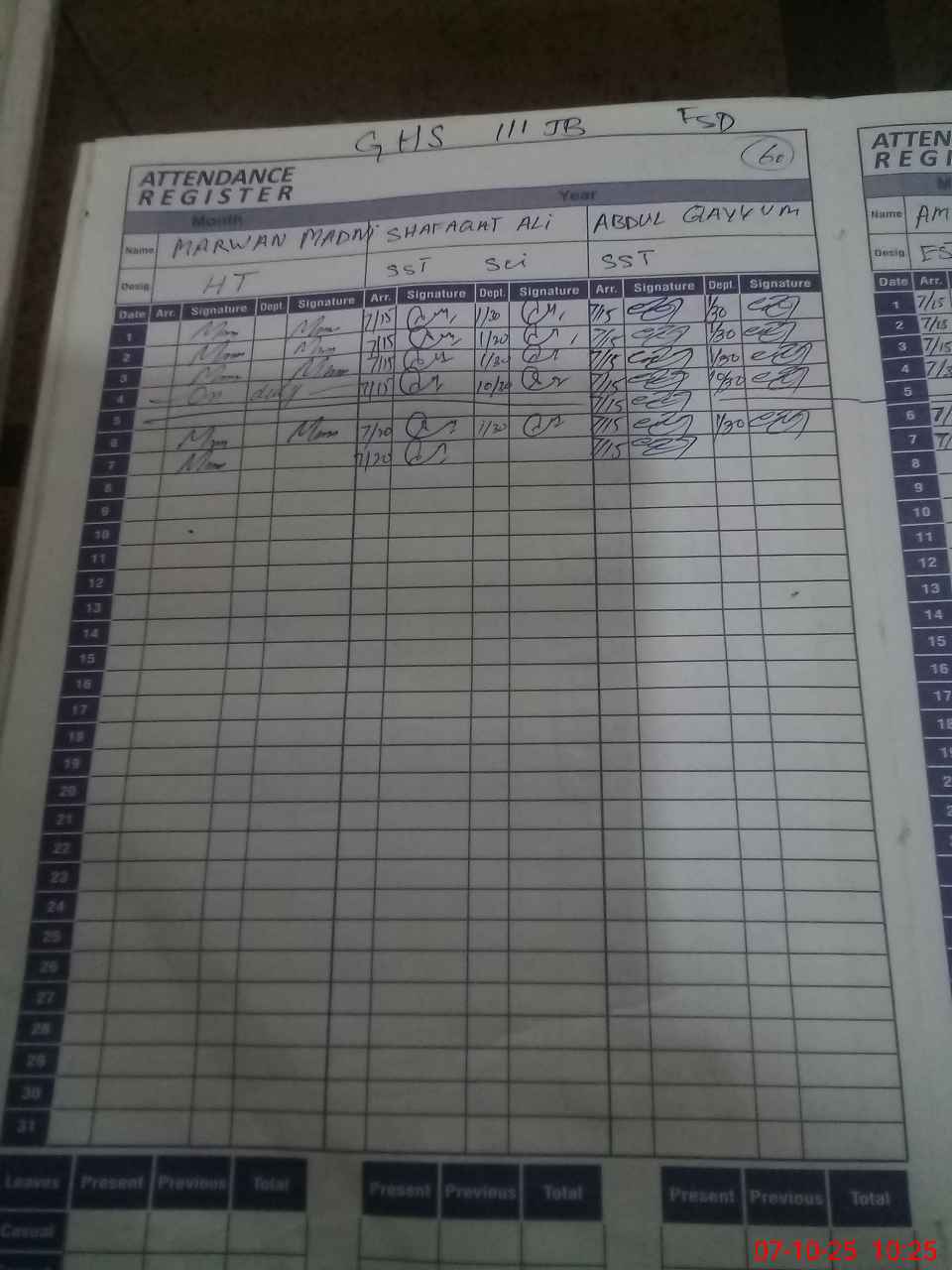 | Remarks (Use Separate Page if Required): SS Baqar Hussain Tariq died on 7 September 2025 PST Abdul Razzaq died in 2021 LA Rashid Hussain attached with GHS 115 JB wef 22 September 2025 to 14 December 2025 authority letter available NSB record not maintained properly | |||||