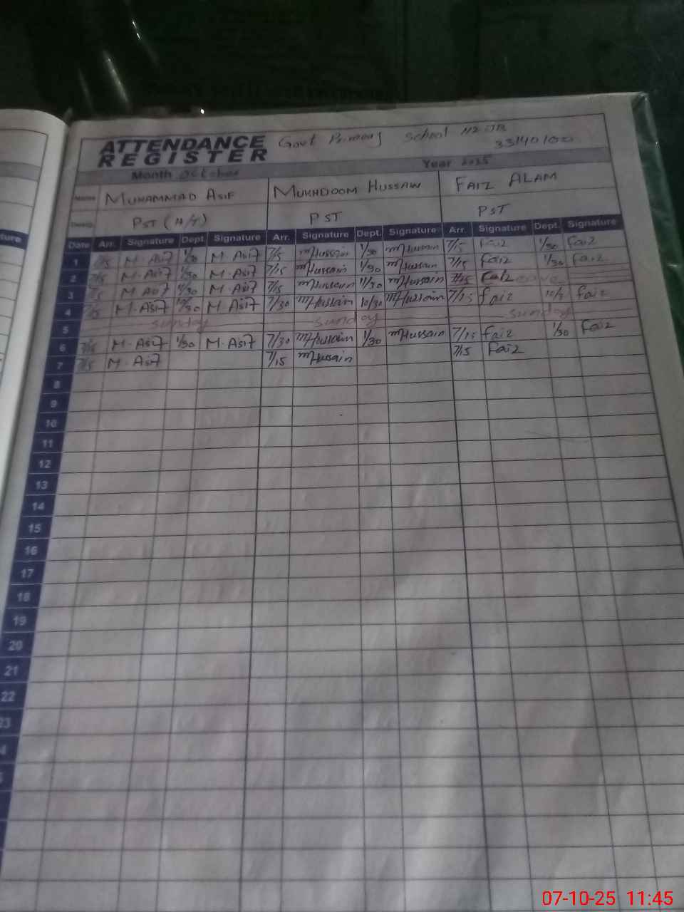 | Name: Mu**** As**** Designation: (School Headmaster's/Headmistress's) PST Phone/Cell Number: 03**** |