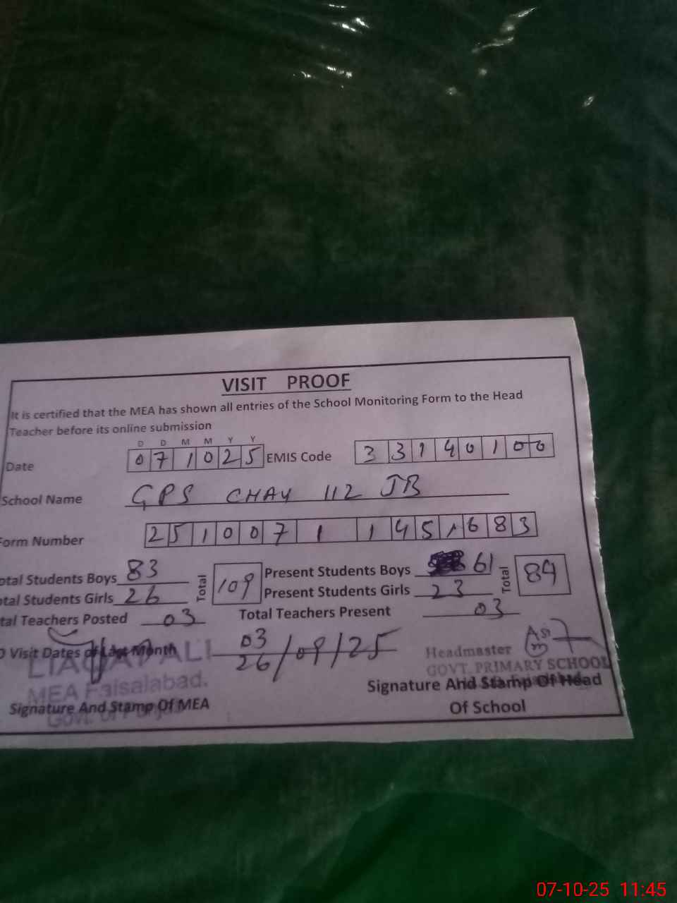 | EMIS Code: 33140100 | Name of School: GPS CHAK 112 JB | |||