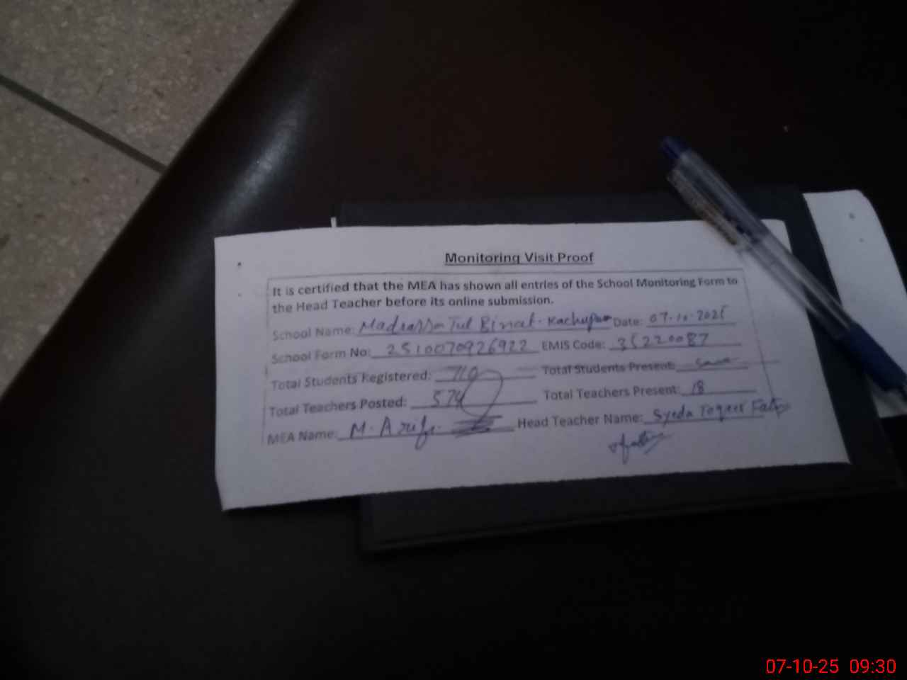 | Certified that this School was Inspected by the Undersigned MEA/DMO Today and the Information Stated Above is as Per Record. | |||||