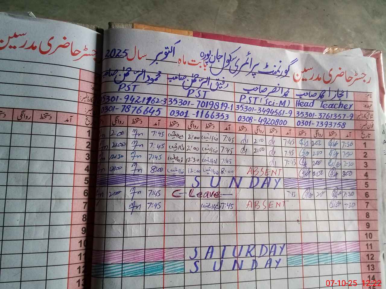 | CNIC | Full Name | Designation | R/C | Absence During Last Calender Month |