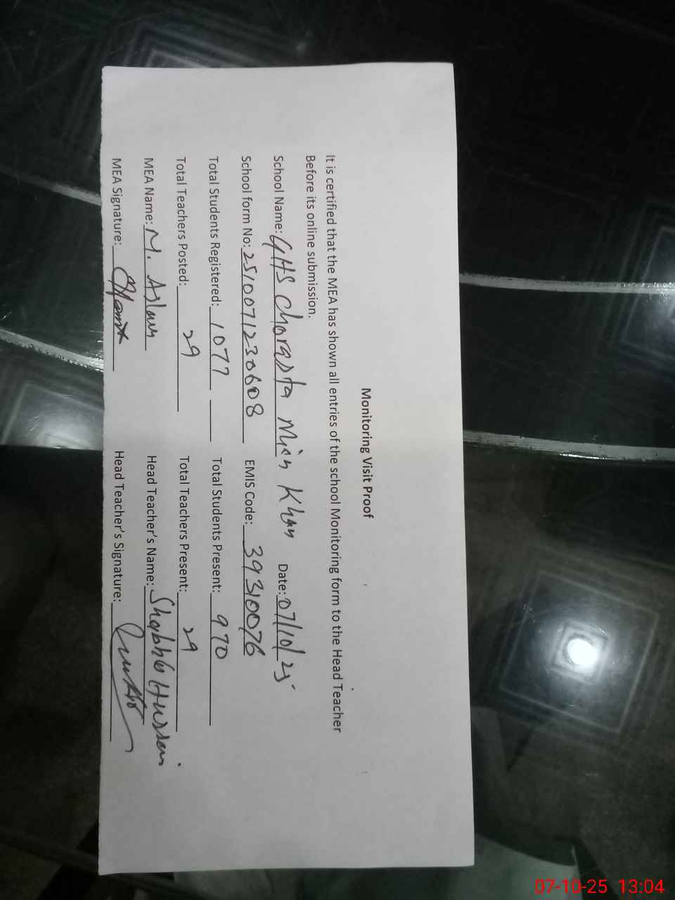 | EMIS Code: 39310076 | Name of School: GHS CHAURASTA MIAN KHAN | |||