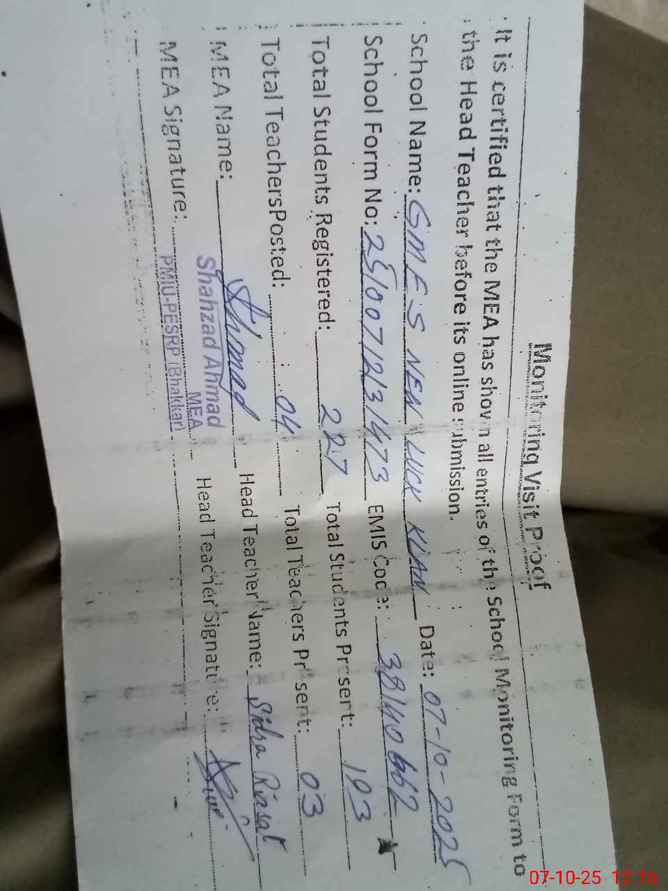 | Certified that this School was Inspected by the Undersigned MEA/DMO Today and the Information Stated Above is as Per Record. | |||||