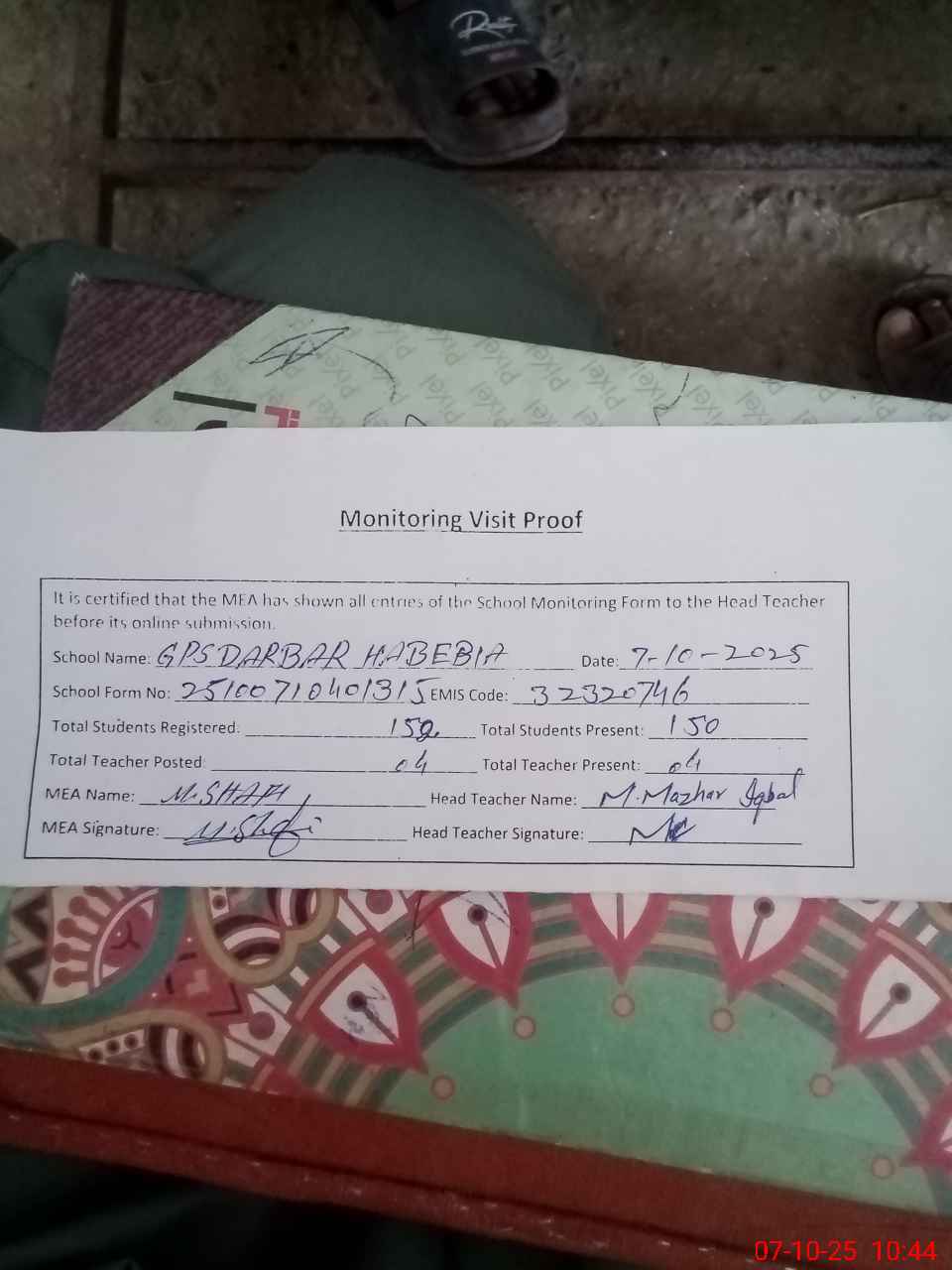 | EMIS Code: 32320746 | Name of School: GPS DARBAR HABEBIA | |||