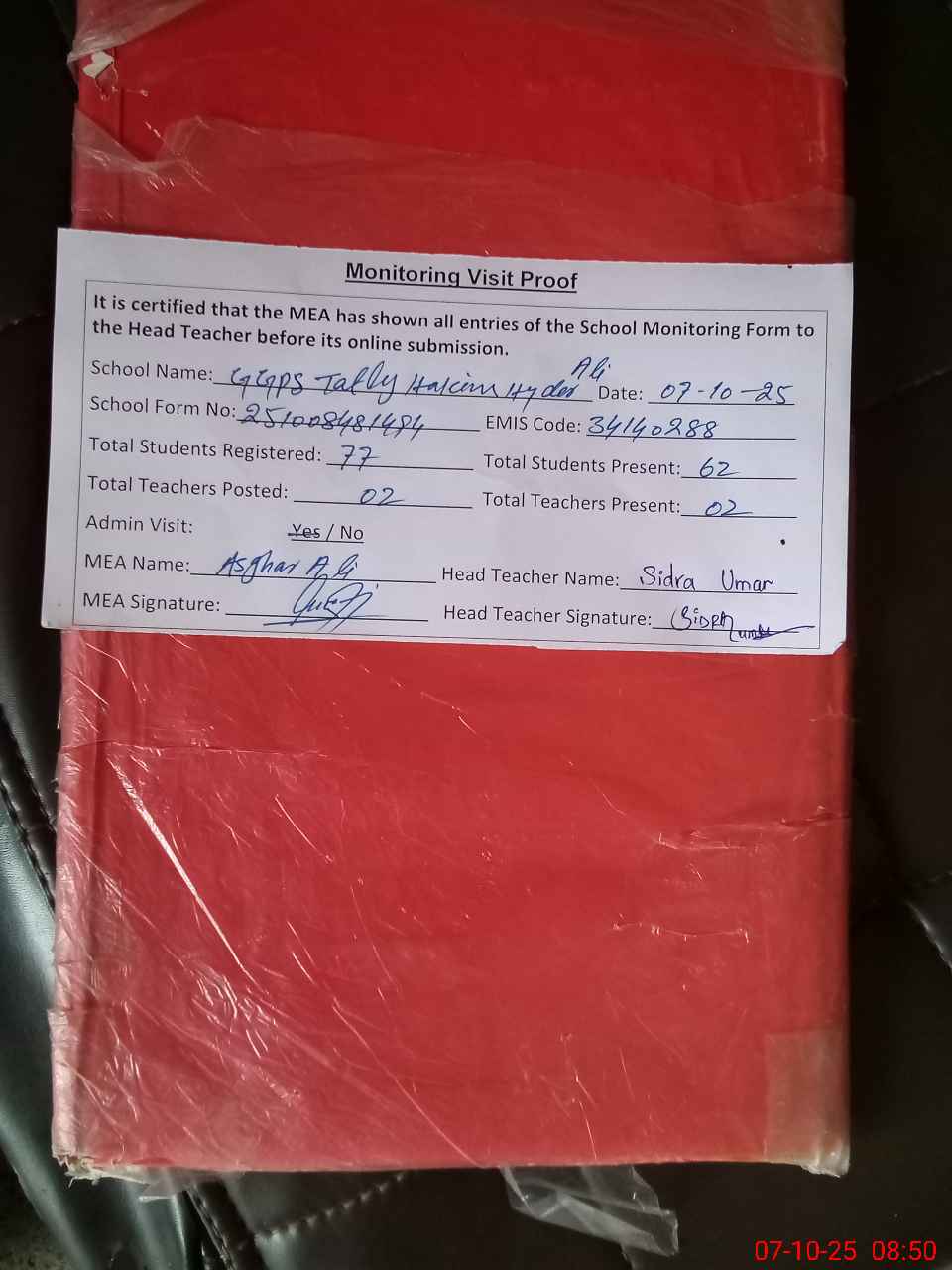| EMIS Code: 34140288 | Name of School: GGPS TATLAY HAKIM HAIDER | |||