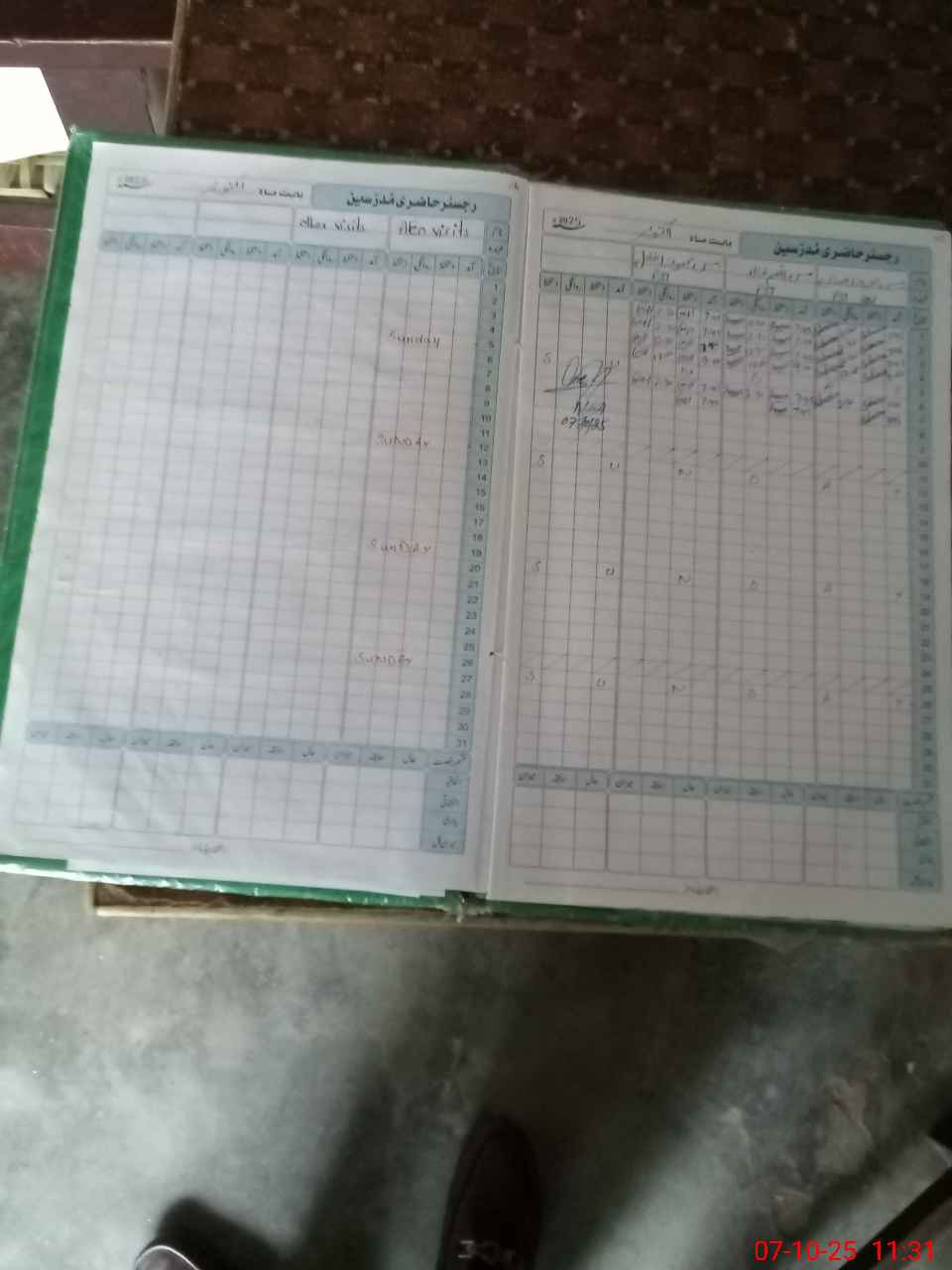 | CNIC | Full Name | Designation | R/C | Absence During Last Calender Month |
