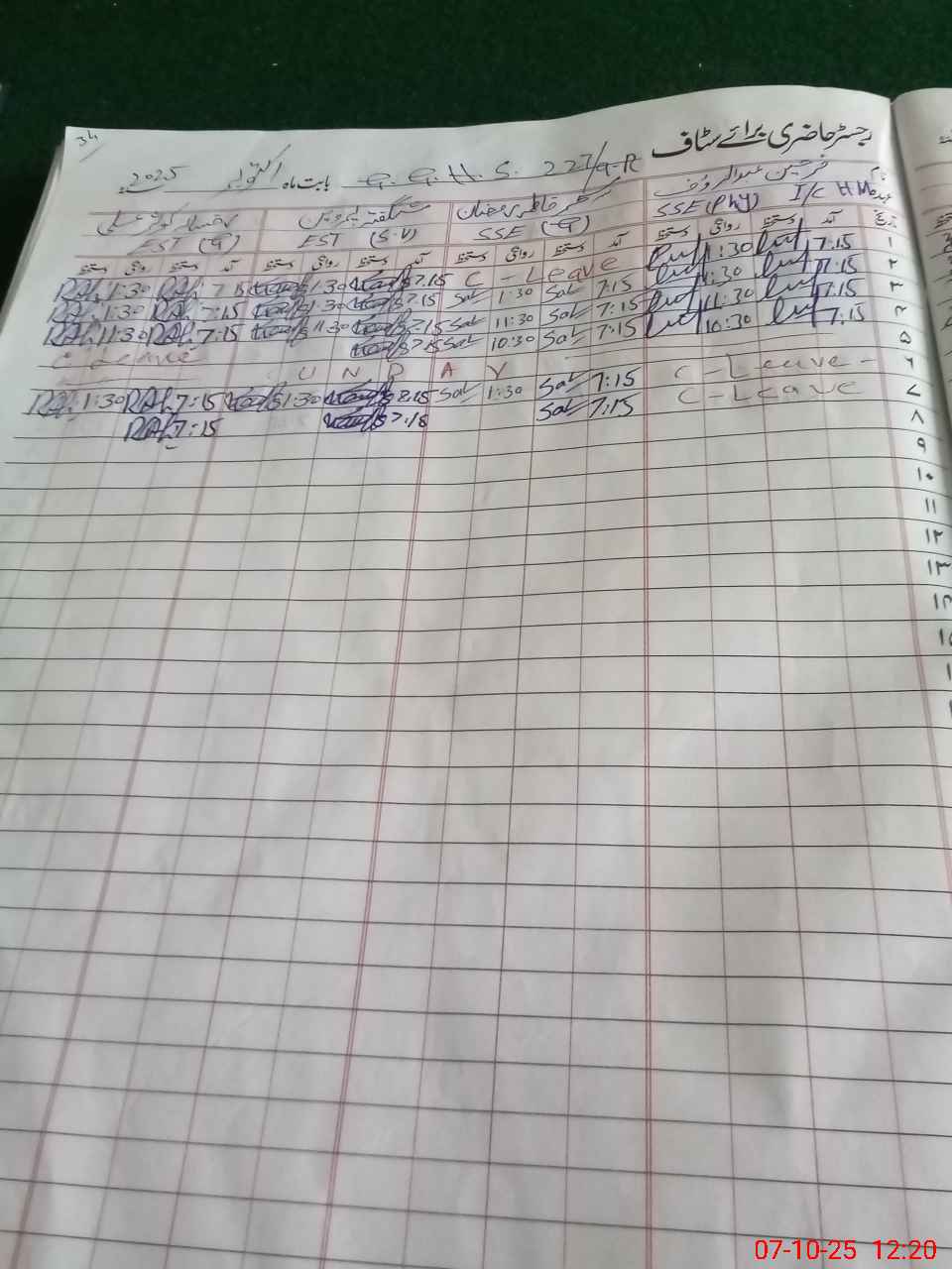 | CNIC | Full Name | Designation | R/C | Absence During Last Calender Month |