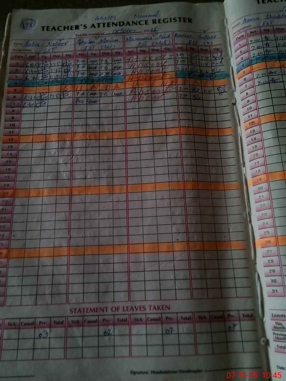 | 37**** | Me**** Ab**** | EST | Regular | 0 | 0 | 0 | 0 | 0 | 0 | 0 | 0 | 0 | Absent (Un-Authorized) |