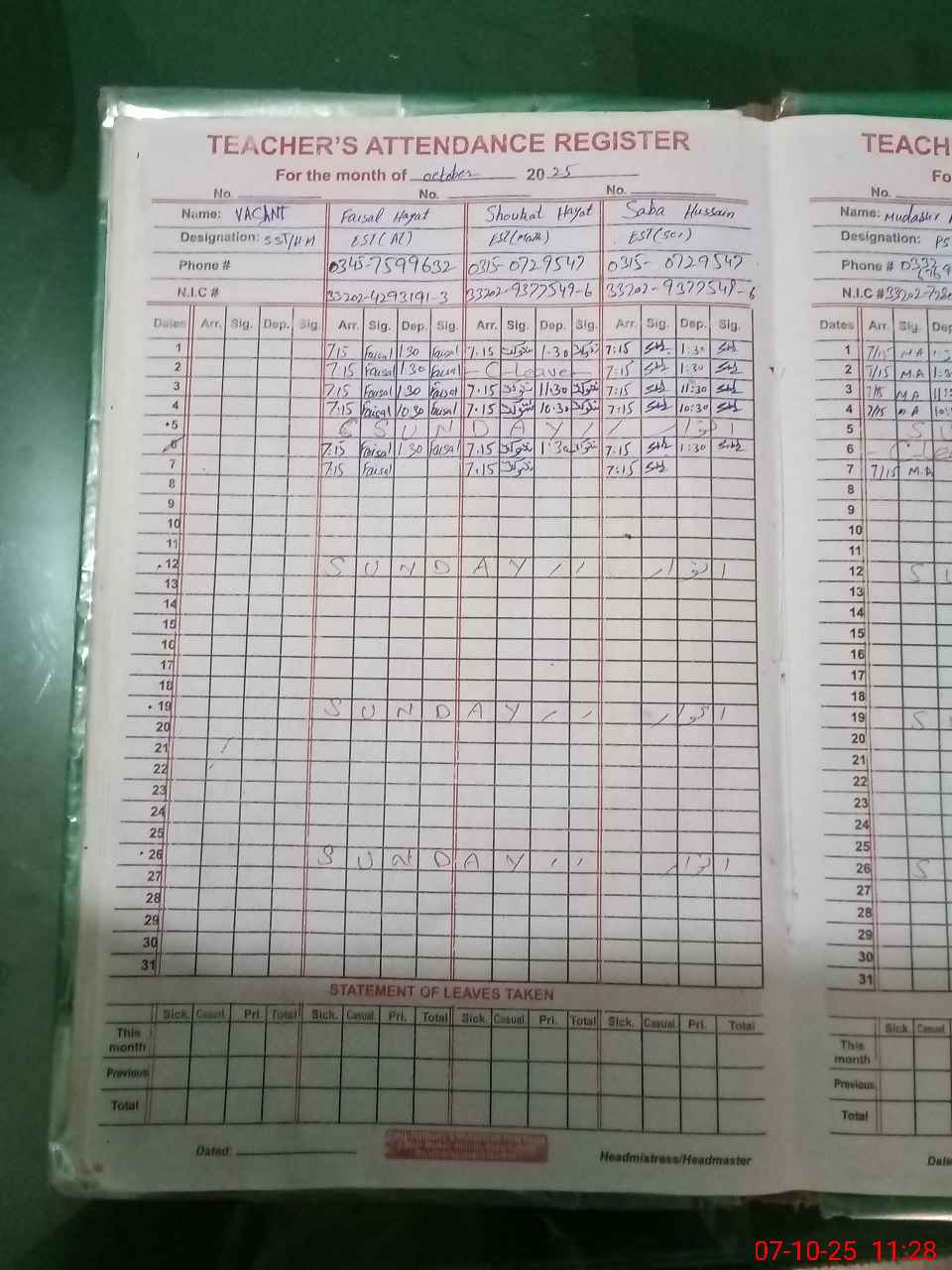 | Name: Sh**** Ha**** Designation: (School Headmaster's/Headmistress's) EST Phone/Cell Number: 03**** |