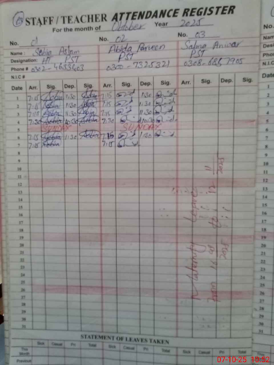 | 36**** | Sa**** An**** | PST | Regular | 30 | 0 | 0 | 30 | 0 | 0 | 0 | 0 | 0 | Maternity |