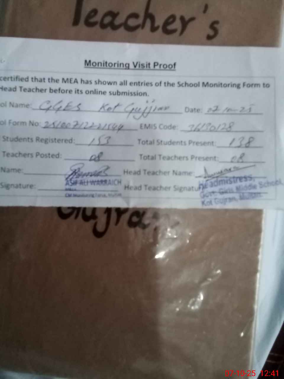 | EMIS Code: 36130128 | Name of School: GGES KOT GUJRAN P/O KOT GUJRAN | |||