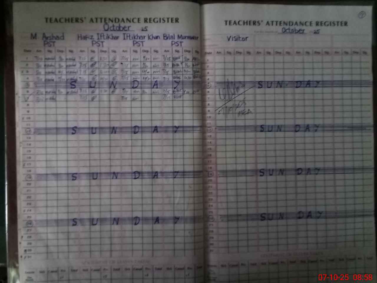 | CNIC | Full Name | Designation | R/C | Absence During Last Calender Month |