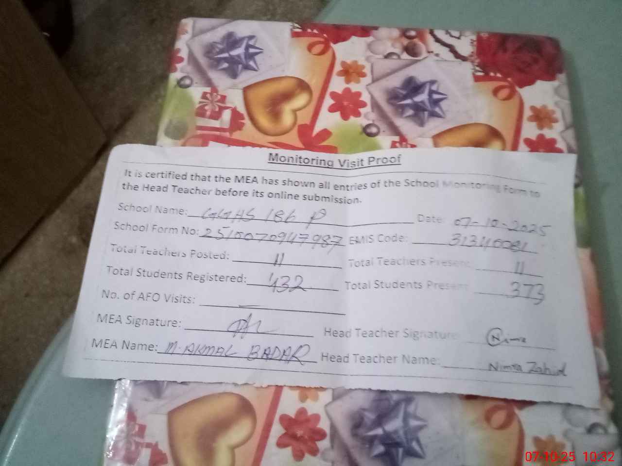 | EMIS Code: 31340081 | Name of School: GGHS 186/P | |||