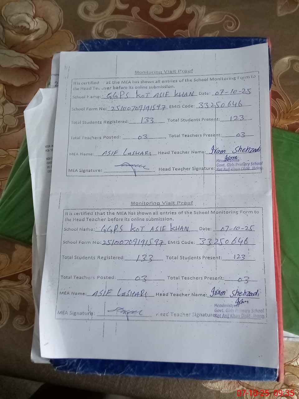 | EMIS Code: 33250646 | Name of School: GGPS KOT ASIF KHAN | |||