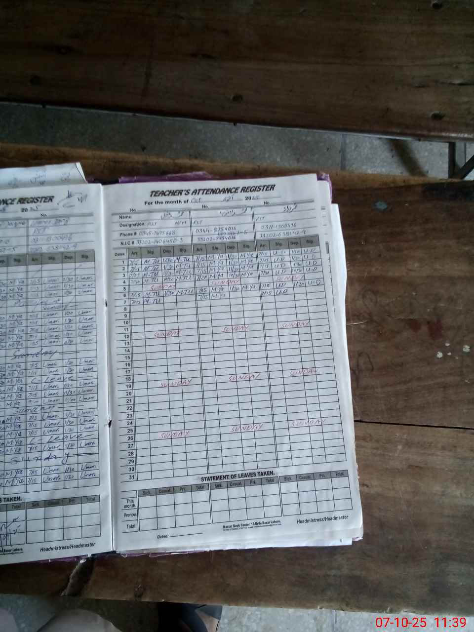 | Name: MU**** Tu**** Designation: (School Headmaster's/Headmistress's) PST Phone/Cell Number: 03**** |