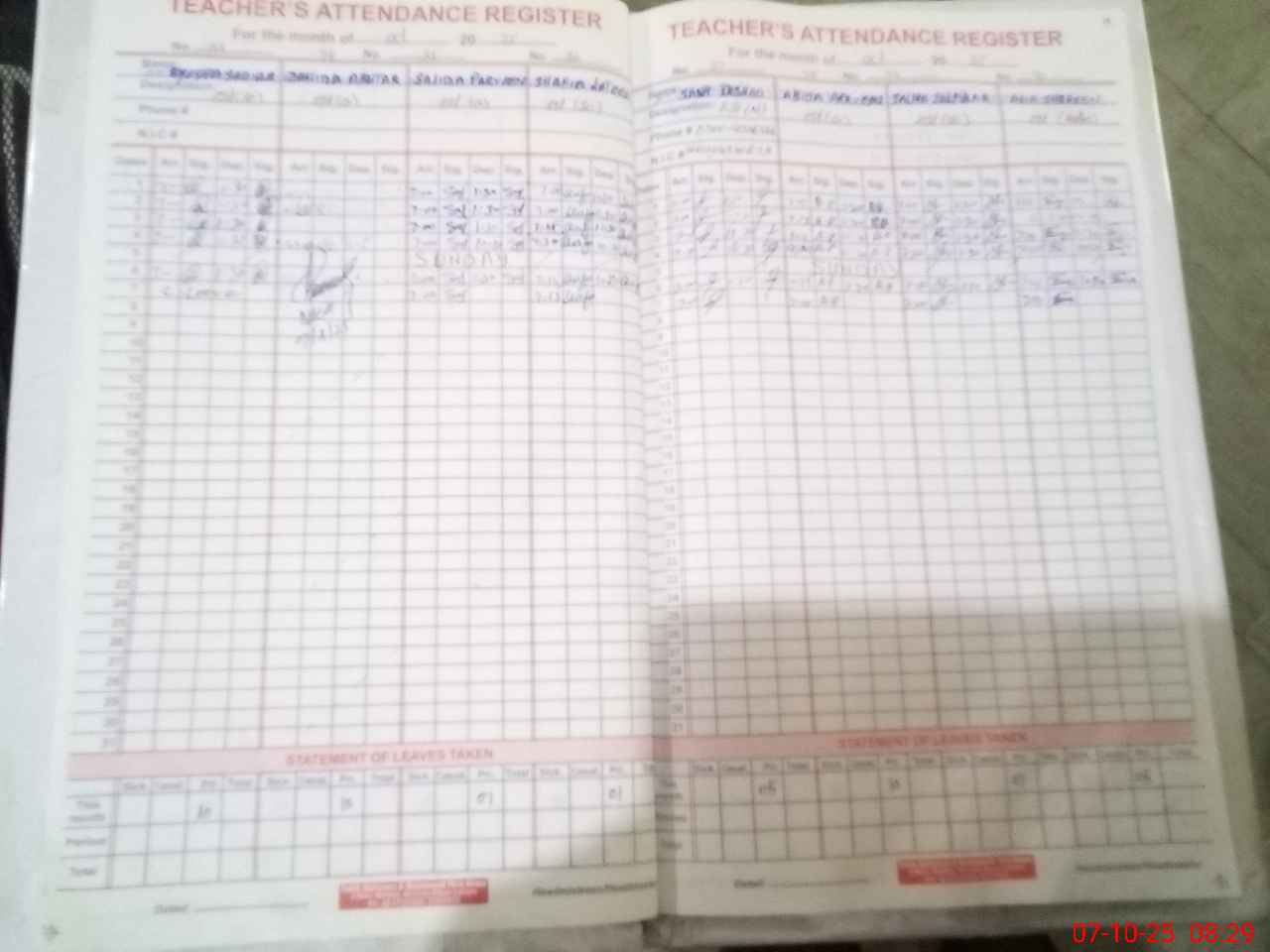 | 36**** | Sa**** Sh**** Na**** | 1 | 2 | 0 | 0 | 0 | 0 | 0 | 0 | 0 | 2 | Absent (Un-Authorized) | |