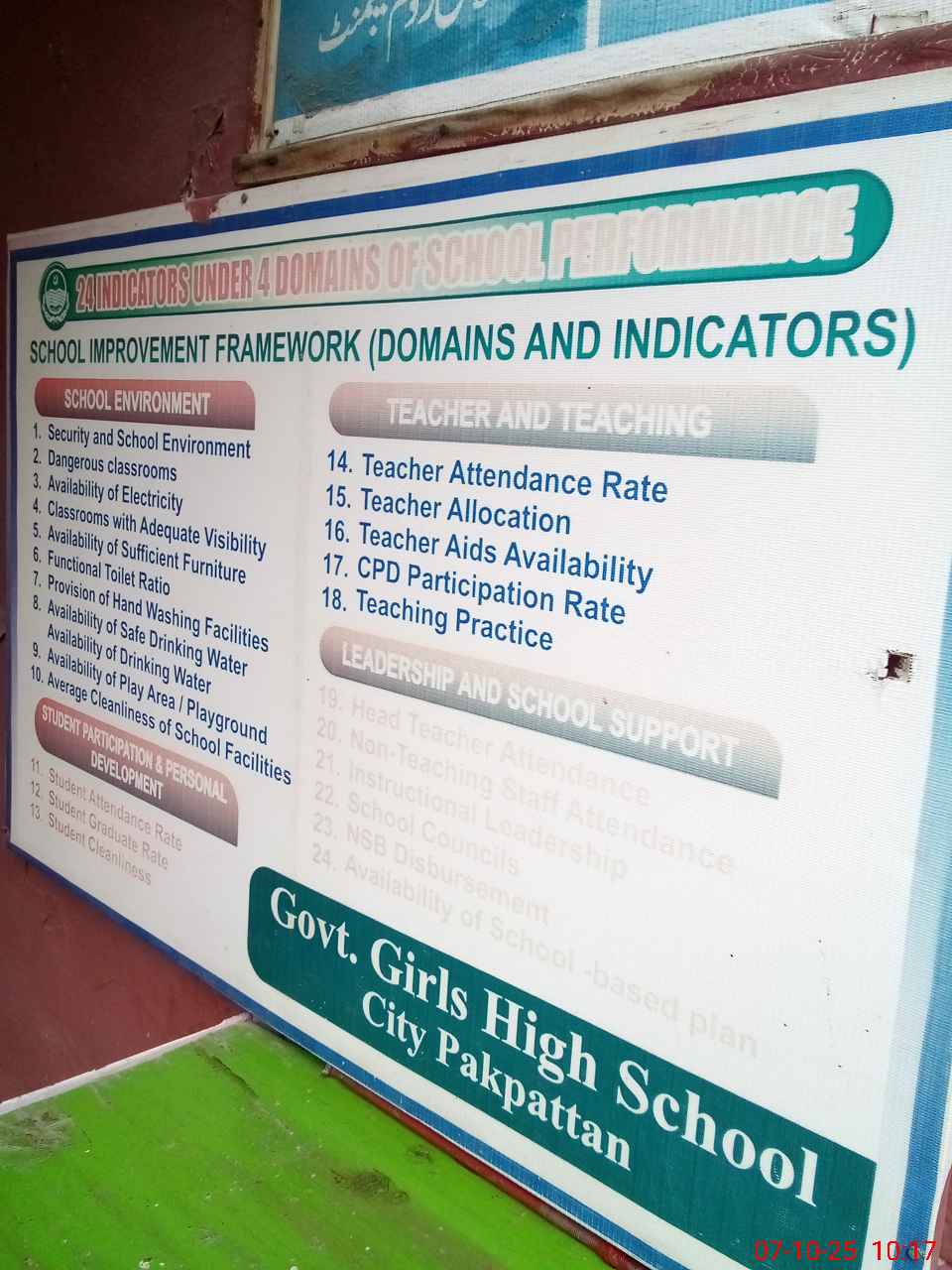 | EMIS Code: 39210027 | Name of School: GGHS PAKPATTAN | |||