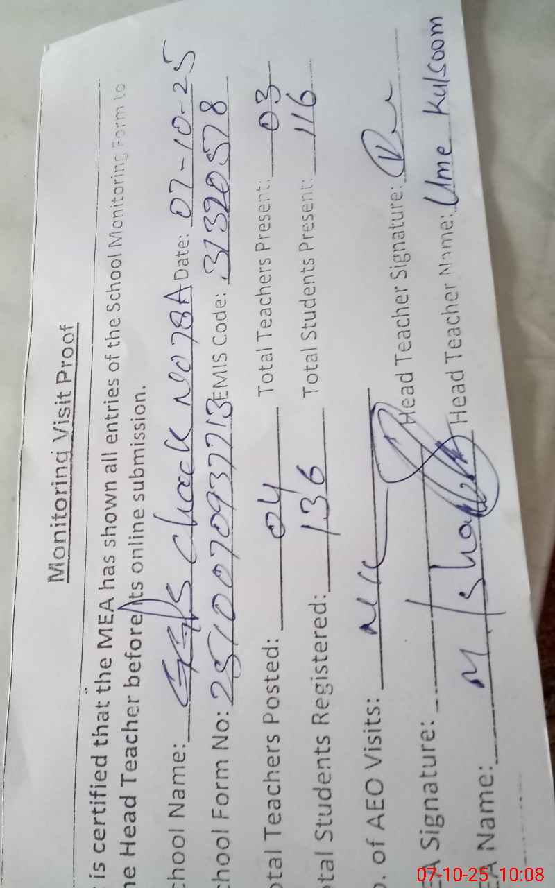 | EMIS Code: 31320578 | Name of School: GGPS CHAK 78/A | |||